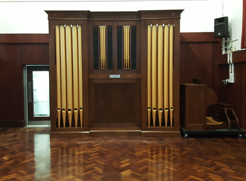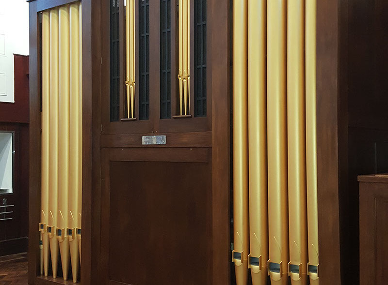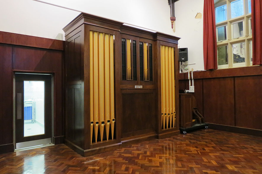 The specification is of diapason, flute, salicional & trumpet with three 16ft extensions, all in a very compact and smart case. The sound is wonderful and fills its new home beautifully.