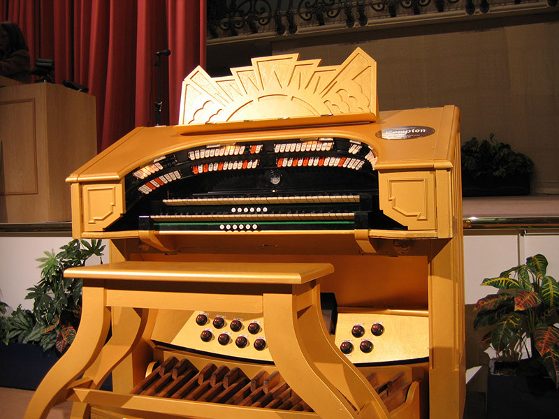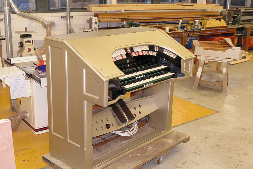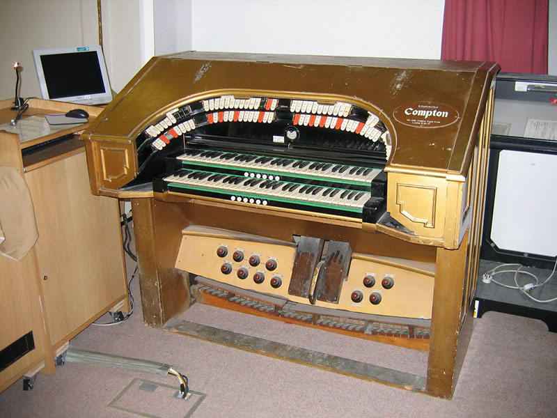 This delightful small Compton cinema organ has been under the company's care for over 10 years - initially made playable under a project for our previous incarnation HWS Associates LLP, and more recently further works and ongoing care as Taylor-Hammond Associates Ltd. The organ had been unplayable for some 20 years prior to our being involved and was in a sorry state when we first saw it in 2005. The initial main works back then constituted a programme of re-leathering, repairing pipe damage, installing a new main cable, extensive cleaning, new electrics for the blower and the console refurbished. Subsequent works in 2014 included installation of a multiplexer, respraying the console again to suit new decor in the cinema and other general works.